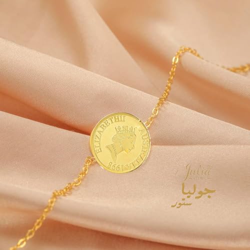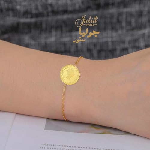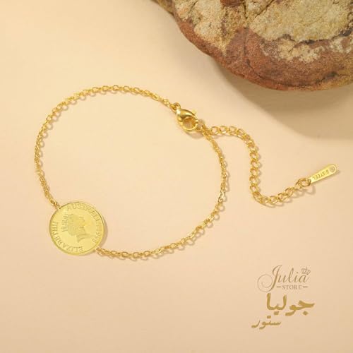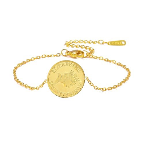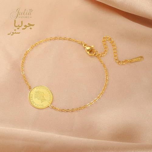 Julia Store - Julia Store 18K Gold Plated Stainless Steel Luxury Queen Elizabeth Coin Vintage Delicate Bracelet, Dainty Delicate Luxury Elegant Chain Bracelet for Women Teen Girls