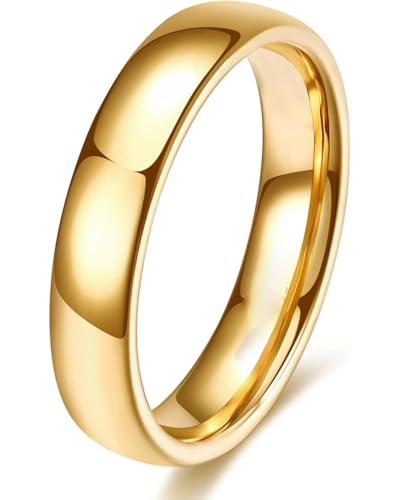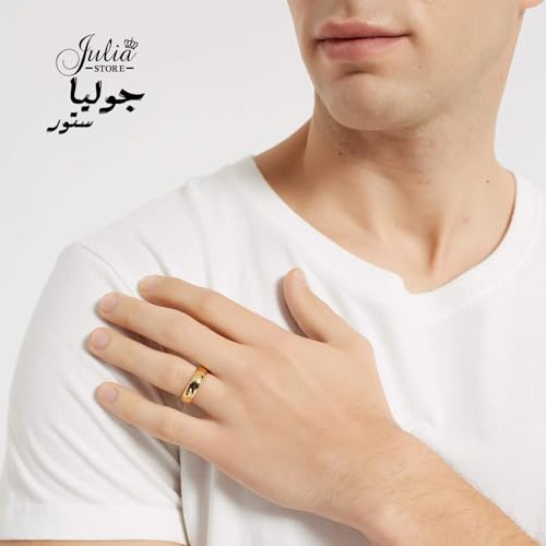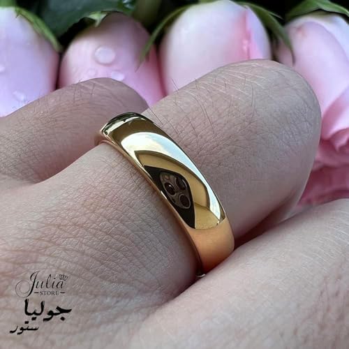 Julia Store - Julia Store 18K Gold Plated Stainless Steel Ring Love Trendy Friendship Unisex Adults Golden High Polish Love Plain Dome Gold Wedding Comfort Fit Ring Band Wedding Jewelry