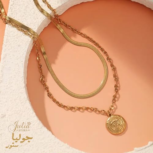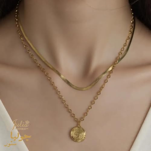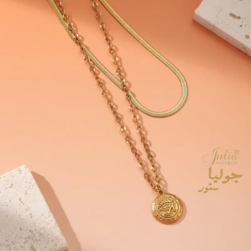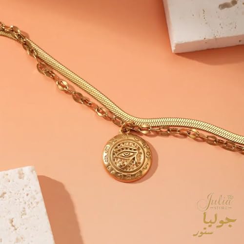 Julia Store - قلادة من الستانلس ستيل المطلي بالذهب عيار 18 قيراط على شكل ثعبان متعرج وعين حورس من جوليا ستور، مجوهرات حماية مصرية قديمة، قلادة تميمة الحظ العتيقة، هدايا مجوهرات