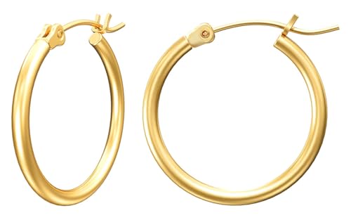 Julia Store - Julia Store 18K Gold Plated Stainless Steel Thin Trendy Gold Chunky Hoop Geometric Statement Hollow Tube Earrings Long Link Dangle Earrings Gold Prom Earrings for Women 20 mm