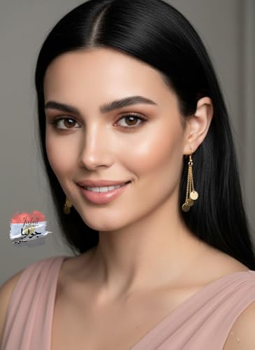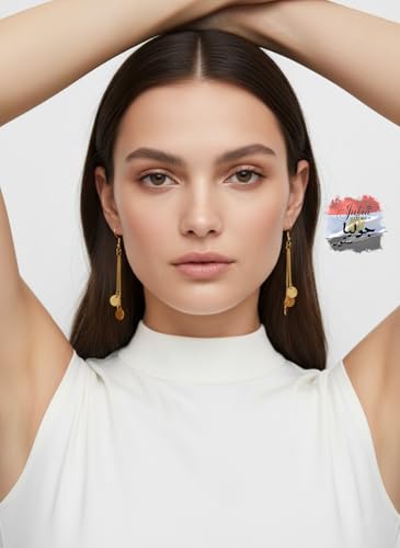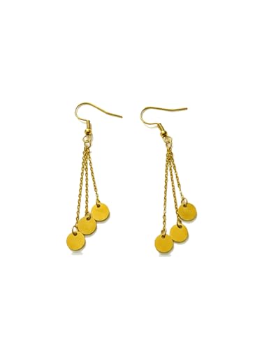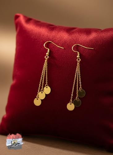 Julia Store - اقراط ستانلس ستيل مطلية بالذهب عيار 18 قيراط من جوليا ستور، اقراط عصرية فاخرة فاخرة ورقيقة الاكثر مبيعا ثلاثية دائرية من الستانلس ستيل، اقراط بخطاف متدلي، هدية مجوهرات للنساء