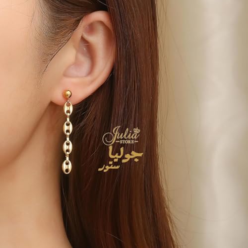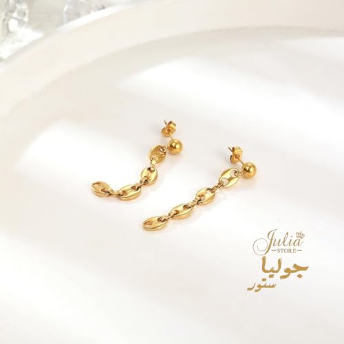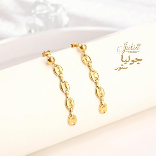 Julia Store - حلقان عصرية أنيقة من الفولاذ المقاوم للصدأ المطلي بالذهب عيار 18 قيراط، حلقان أنيقة على شكل حبوب القهوة بتصميم بسيط متدلي، مجوهرات هيب هوب هدية من جوليا ستور