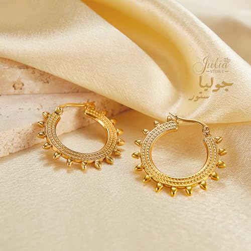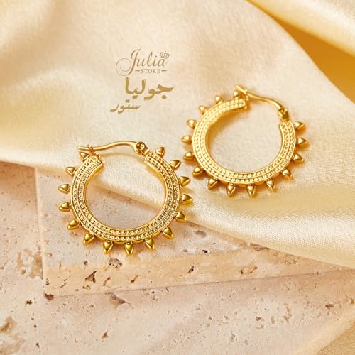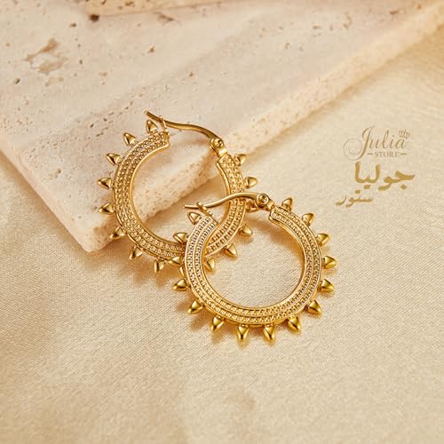 Julia Store - Julia Store 18K Gold Plated Stainless Steel Trendy Dainty Luxury Non-Tarnish Minimalist Chunky Luxury Aesthetic Exquisite Spiky Huggie Hoop Earrings Jewelry Gift