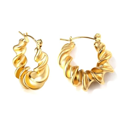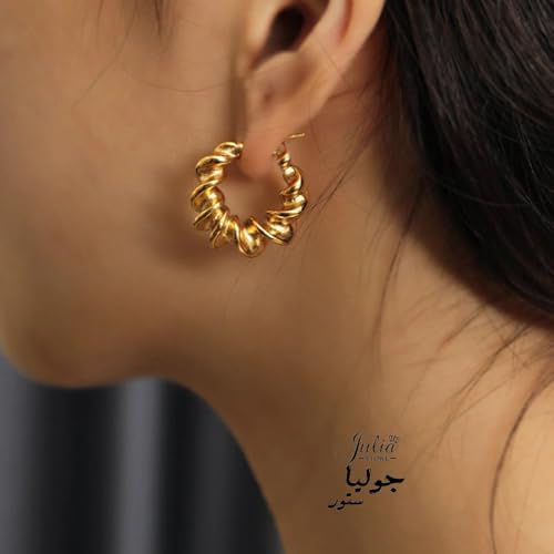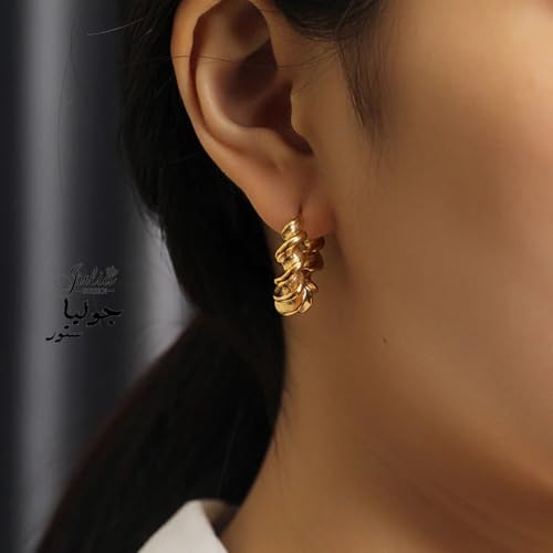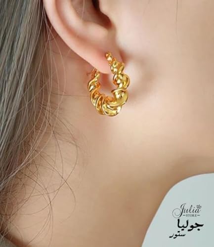 Julia Store - Julia Store 18K Gold Plated Stainless Steel Trendy Dainty Luxury Non-Tarnish Minimalist Chunky Torcido Twisted Rope Hoop Huggie Earrings