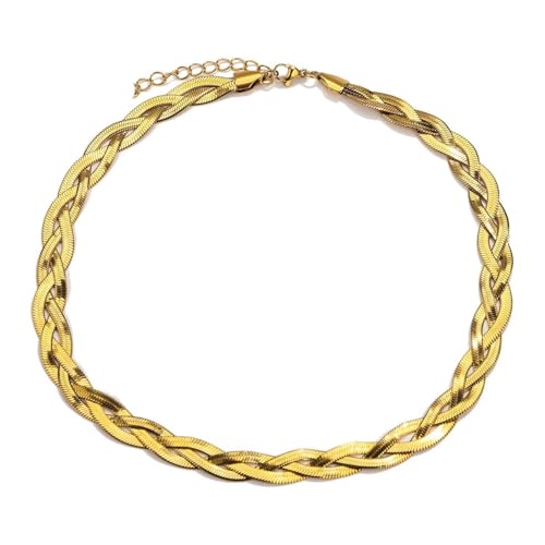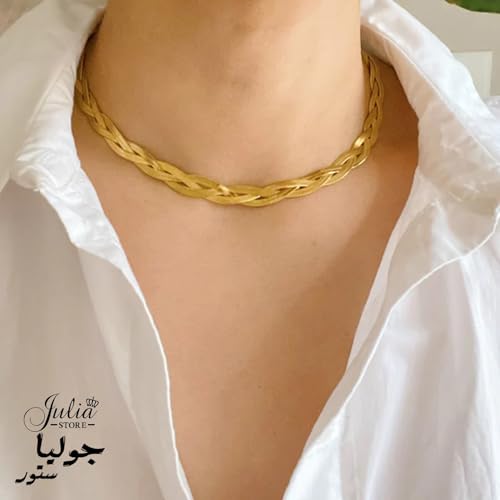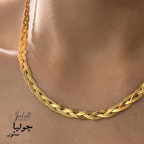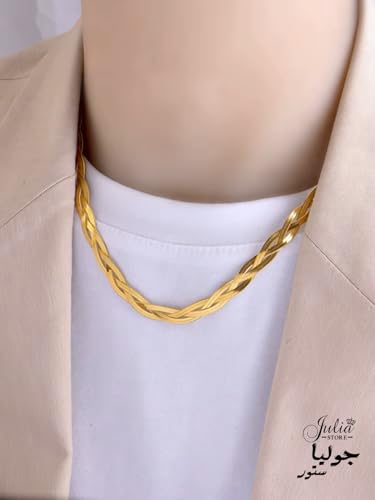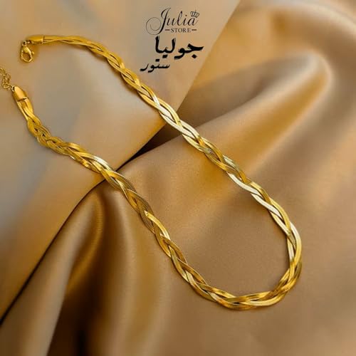 Julia Store - سلسلة من الفولاذ المقاوم للصدأ المطلي بالذهب عيار 18 قيراط، تصميم عصري وأنيق بتصميم متعرج من ثلاث طبقات بتصميم ثعبان، سلسلة فاخرة تصلح كهدية مجوهرات فاخرة من جوليا ستور