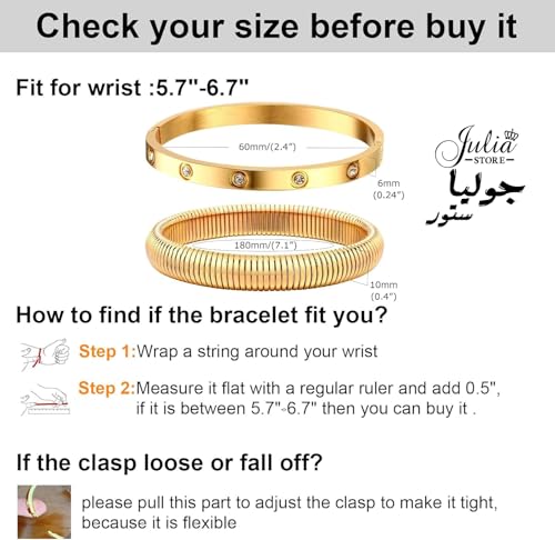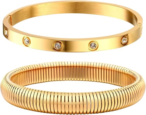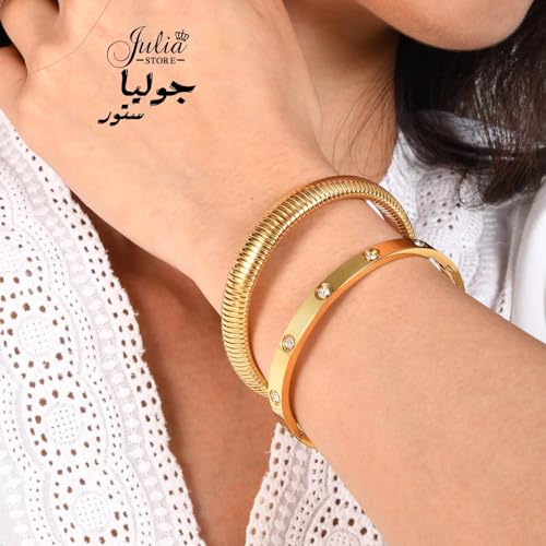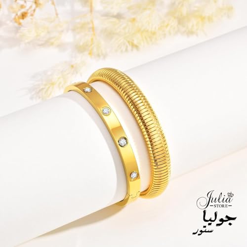 Julia Store - سوار صداقة من الستانلس ستيل مطلي بالذهب عيار 18 قيراط، مجموعة أسورة الحب الكريستالية مكونة من سوار سلسلة ذهبي + سوار ثعبان حلقي سميك مبروم للنساء من جوليا ستور