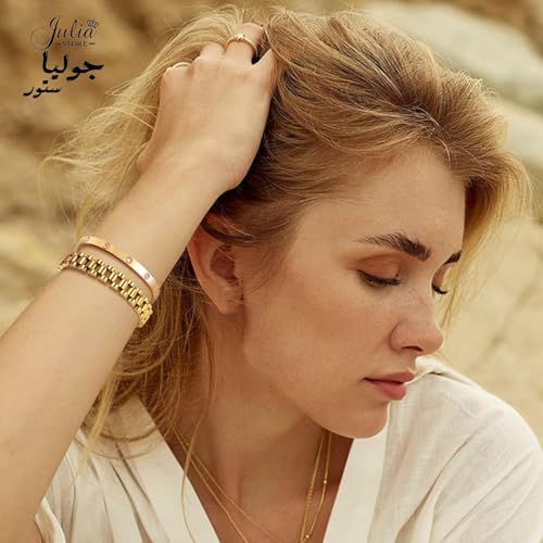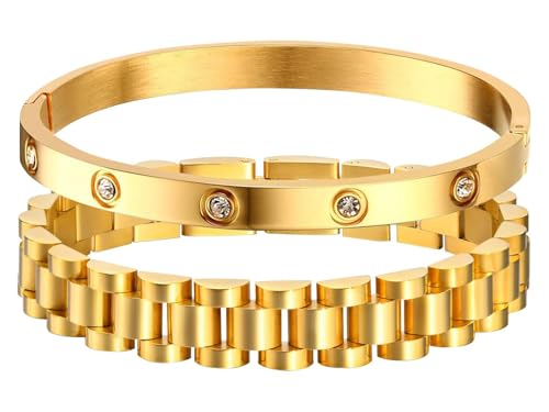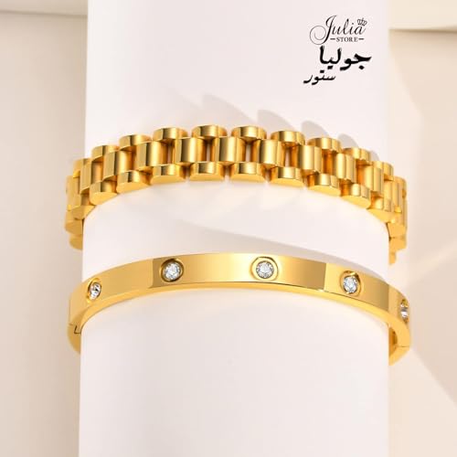 Julia Store - Julia Store 18K Gold Plated Stainless Steel Trendy Luxury Love Crystal Friendship Bracelet Bangle, 2pcs Gold Chain Link Bracelet - Watch Band Chain Wristband Jewelry For Women