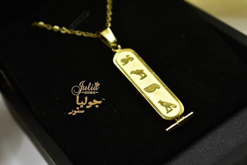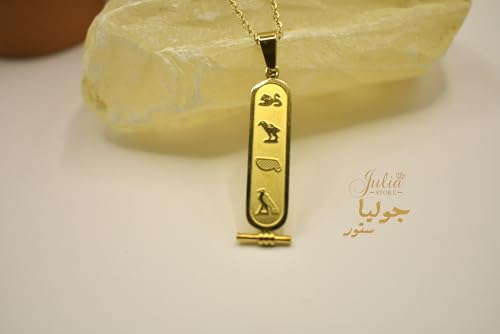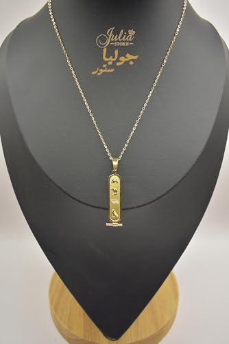 Julia Store - قلادة بدلاية خرطوش مصرية عتيقة مطلية بالذهب عيار 18 قيراط للنساء والرجال من جوليا ستور، قلادة سلسلة تميمة الحظ المصرية القديمة من مجوهرات الحماية