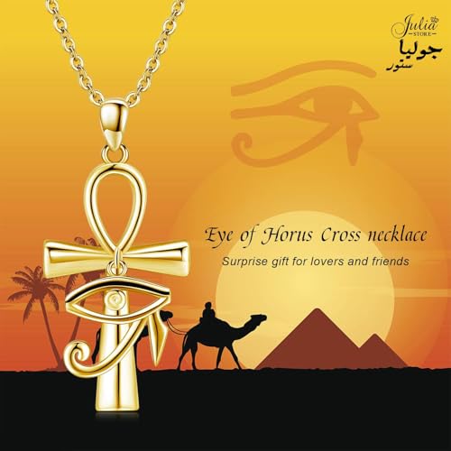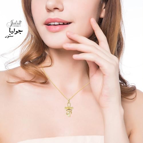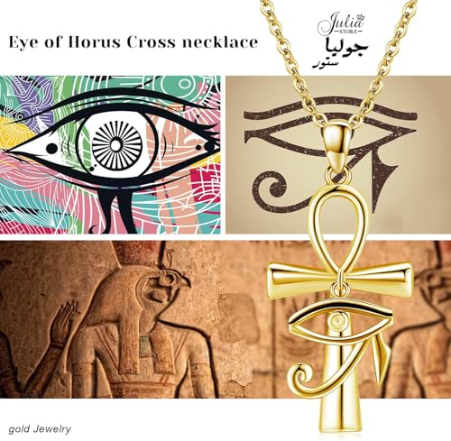 Julia Store - Julia Store 18K Gold Plated Vintage Eye of Horus Ankh Key Pendant Necklace for Women Men, Solid Stainless Steel Lucky Amulet Chain Necklace Ancient Egyptian of Protection Jewelry