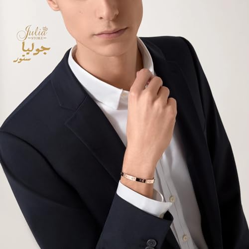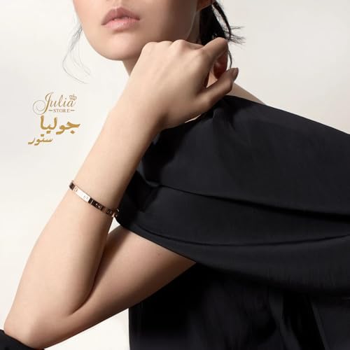 Julia Store - سوار صداقة ستانلس ستيل مطلي بالذهب الوردي عيار 18 قيراط من جوليا ستور الستانلس مجوهرات الحب وعيد وهدايا الكريسماس للنساء