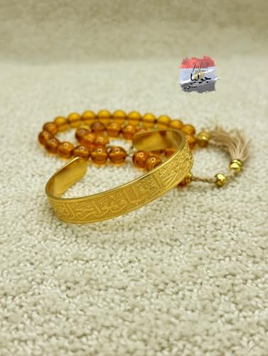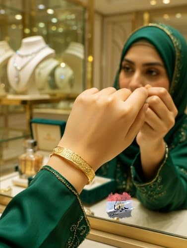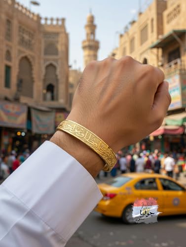 Julia Store - Julia Store 18K White/Yellow Gold Plated 316L Stainless Steel Islamic Jewelry Gifts Allah Safe Bangles "الله خير حافظ وهو ارحم الراحمين" Arabic Cuff Bracelet for Women Men Islam Eid Ramadan