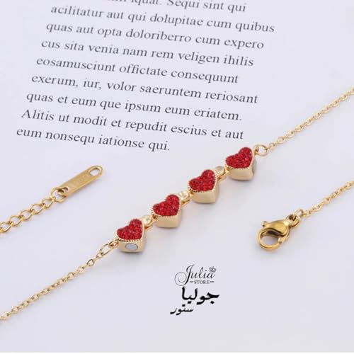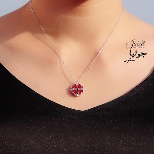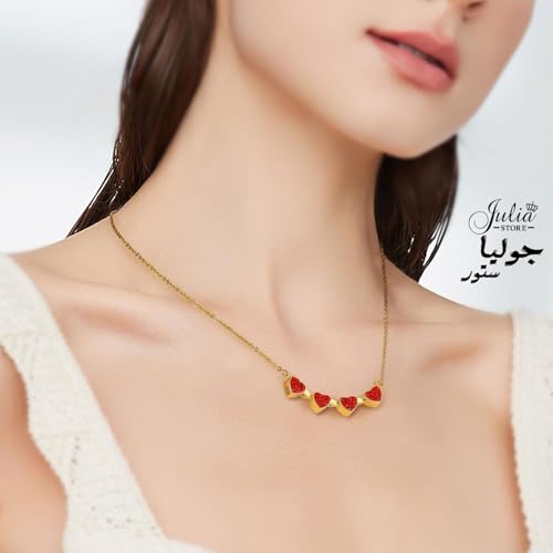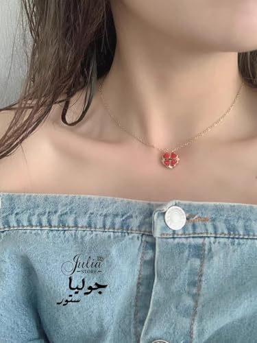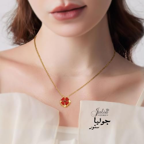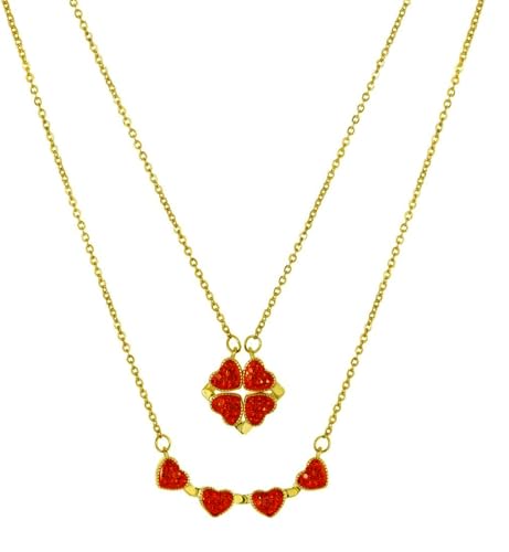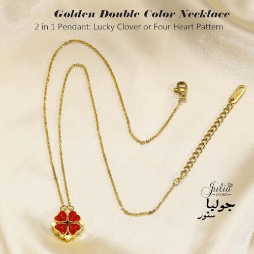 Julia Store - Julia Store 2-In-1 Lucky Clover Leaf Cute Red Heart Necklace Tiny 18k Gold Plated Stainless Steel Heart Pendant Choker Necklaces Small Love Open Heart Necklace for Women Dainty Necklace Gifts for Her