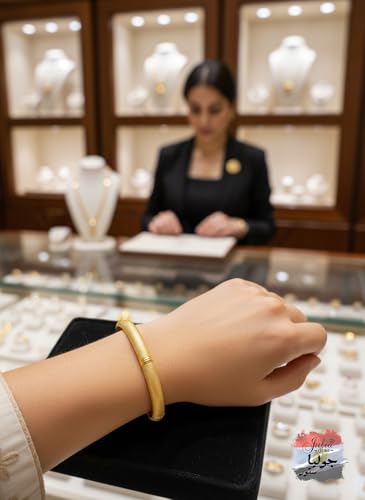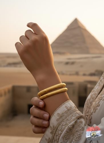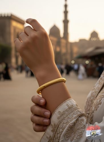 Julia Store - سوار فاخر مطلي بالذهب عيار 21 قيراط من جوليا ستور، سوار فاخر بتصميم شرقي تقليدي عتيق مصري غوايش عربي مسلم لامع للنساء والفتيات هدية مجوهرات