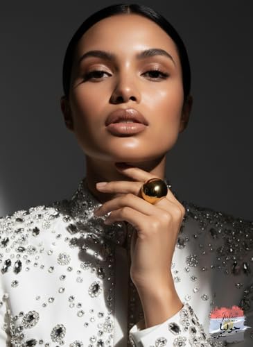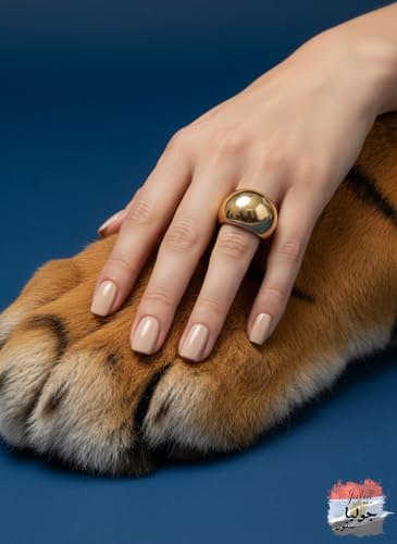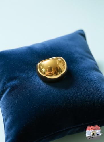 Julia Store - خاتم من الستانلس ستيل المطلي بالذهب عيار 21 قيراط من جوليا ستور، تصميم جمالي وفاخر ورومانسي انيق وعصري وانيق، خاتم كلاسيكي بتصميم قبة كبيرة، هدية مجوهرات للنساء