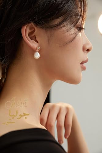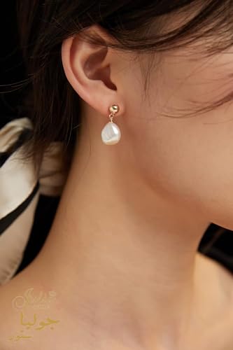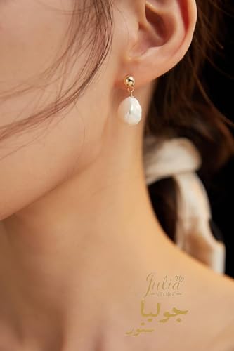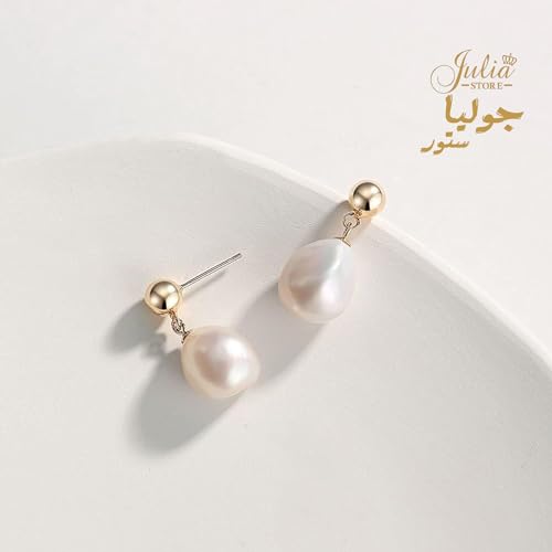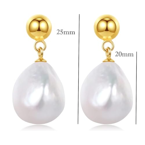 Julia Store - Julia Store Baroque Teardrop Pearl Earrings for Women 18K Gold Plated Stainless Steel Polished Cultured Pearls Hypoallergenic Gold Ball Stud Earrings Gift For Women