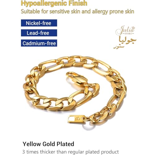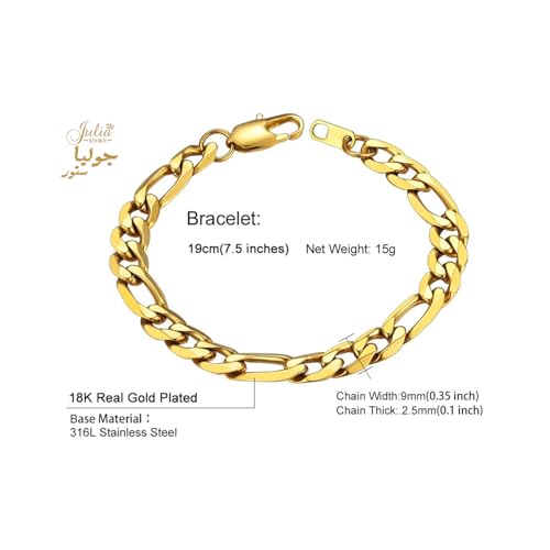Julia Store - Julia Store Figaro Bracelet for Men and Women, Stainless Steel Chain link Bracelet, Gold Plating/Stainless Steel Fashion Jewelry Bracelet Trendy Luxury Jewelry