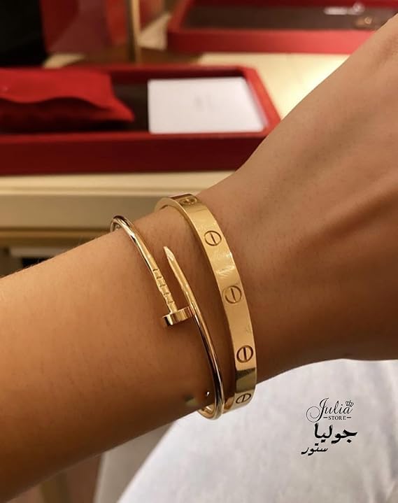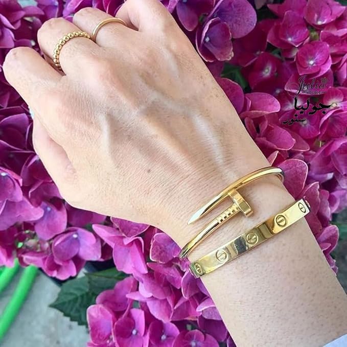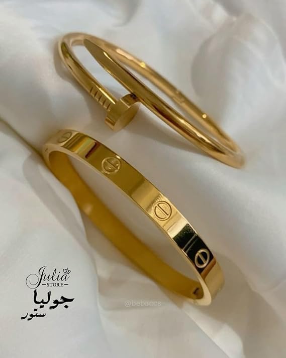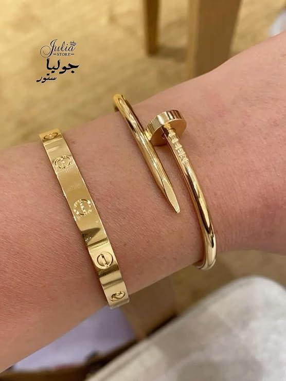 Generic - Julia Store Gold Nail Bracelet Set, Stainless Steel, Screw Design Bangle, 2 Piece Set