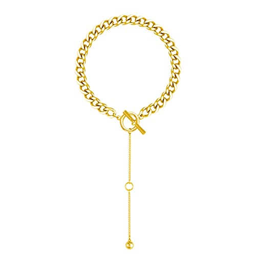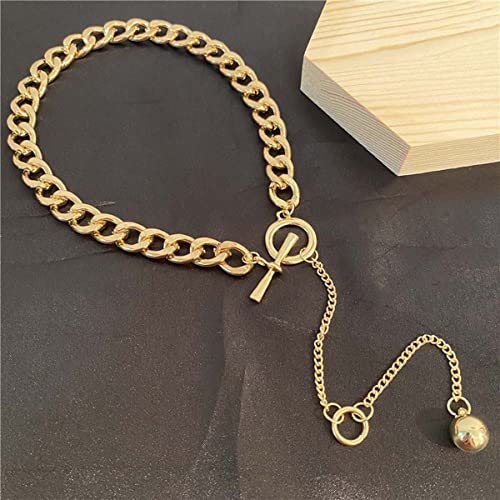 Generic - Julia Store Hip Hop 18K Gold Plated Stainless Steel Thick Metal Ball Long Chain Clavicle Choker Necklace