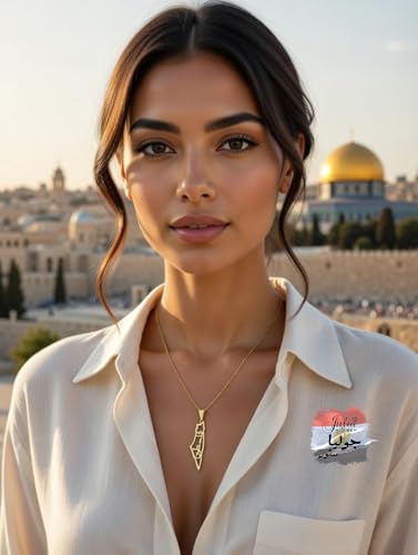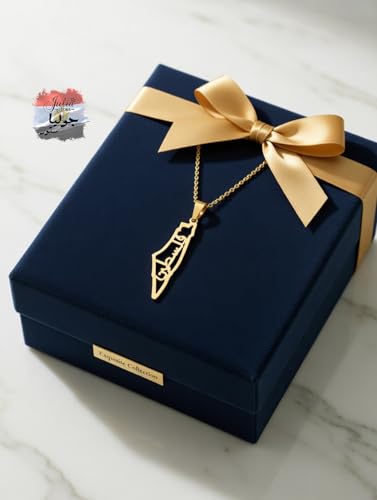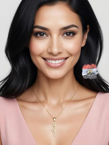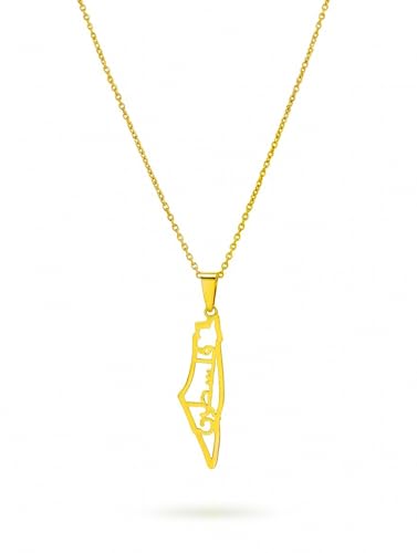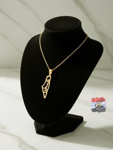 Julia Store - Julia Store Palestine Map With Palestine Word Pendant Necklace For Men Women 21K Gold Plated Stainless Steel Luxury Hypoallergic Palestine Map Pendant Necklace Unisex Jewelry Gift