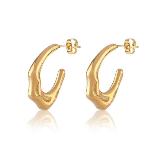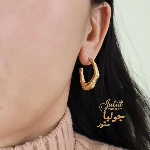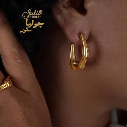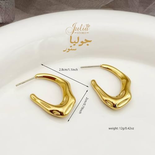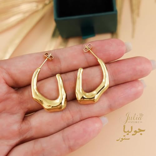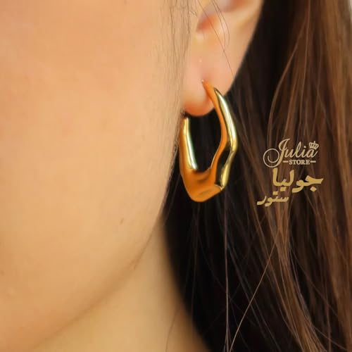 Julia Store - Julia Store Trendy Water Wave Shape Earrings Trendy 18K Gold Plated Earrings Chunky Hoop Earrings | Hypoallergenic Gold Earrings for Women Best Seller Stainless Steel Jewelry
