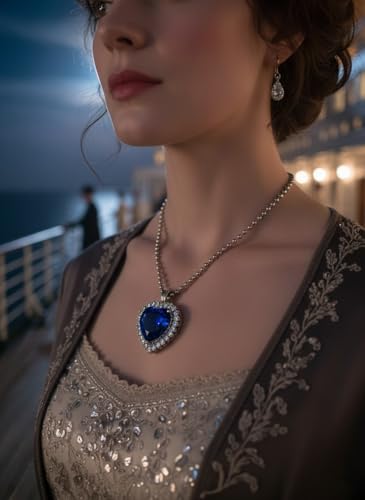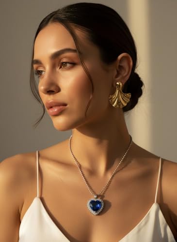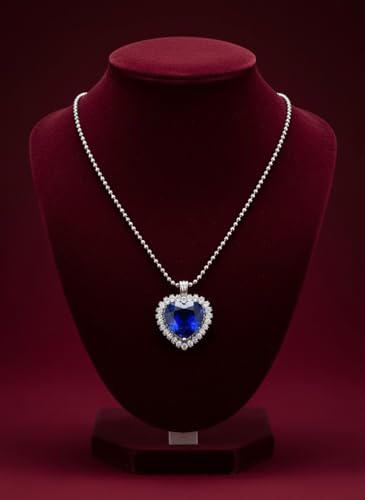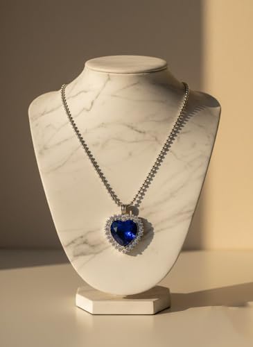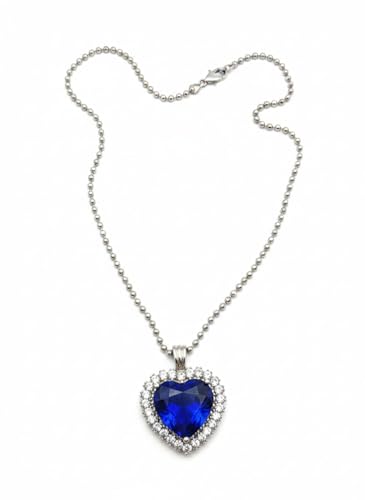 Julia Store - Julia Store White Gold Plated Metal Austrian Cubic Zirconia Luxury Aesthetic Exquisite Vintage Love Trendy Cute Titanic Heart Of Ocean Choker Necklace For Women Jewelry Gift