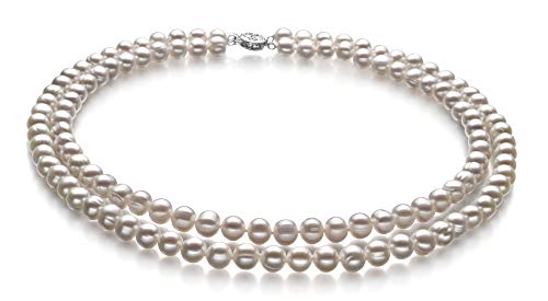 PearlsOnly - طقم لؤلؤ مستزرع من الفضة الاسترلينية 925 عالي الجودة من جوليان وايت 6-7 ملم للنساء