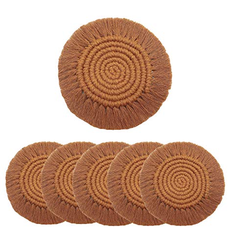 Jullya - Coaster for Drinks,Macrame Coasters Set of 6, Boho Coasters with Tassel, Handmade Woven Coasters Set for Homes, Coffee Table,Bohemian Table Décor,Housewarming Gift