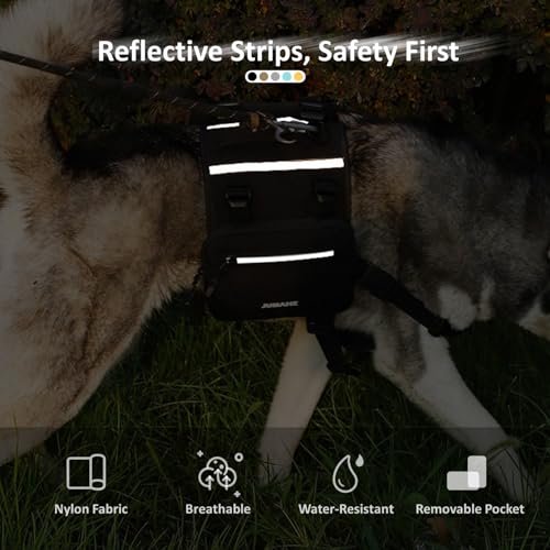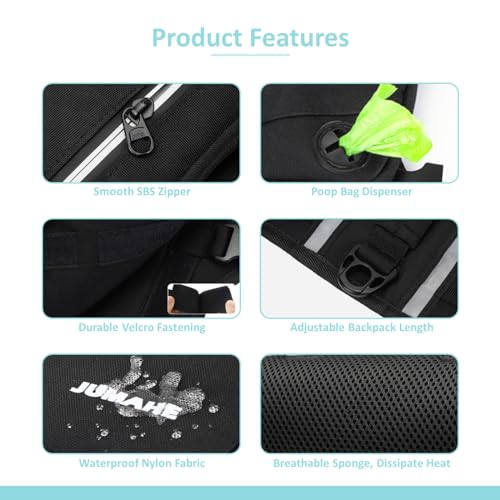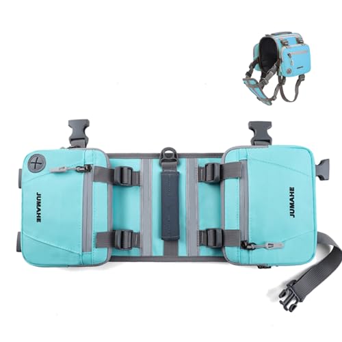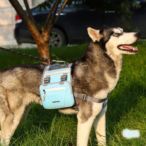 JUMAHE - JUMAHE Dog Backpack for Medium & Large Dogs, Nylon Oxford Dog Backpack Harness Tactical Pet Backpack Harness with Side Pockets and Reflective Stripes for Hiking Walking Training Running,Cyan