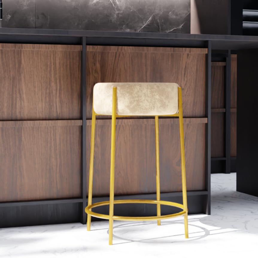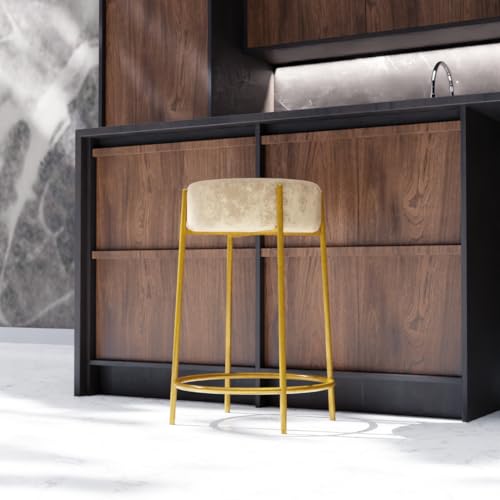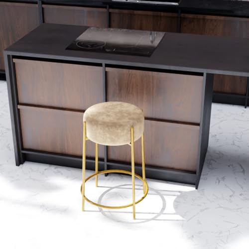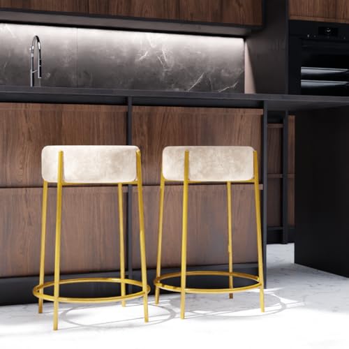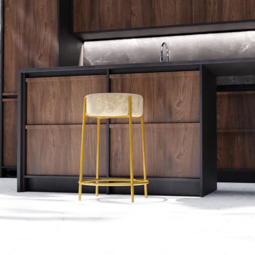 JUMBO CRAFTS - Bar Stools | Counter Height Metal Bar Stools |Industrial Backless Bar Chair for Kitchen Island Golden Metal Unpholstered Cushion - Cream