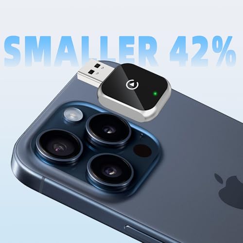 Junboer - محول كاربلاي لاسلكي صغير لايفون - محول كاربلاي لاسلكي للسيارة دونجل بلوتوث متوافق مع ايفون iOS 10+، [مطور 2025] فضي