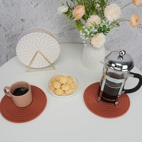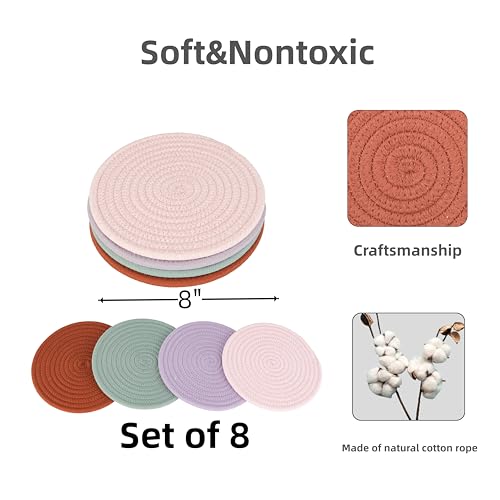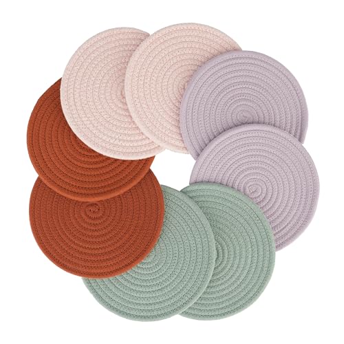 JUNBOLE - حامل أواني من القطن قاعدة للأواني الساخنة والأطباق والطاسات وأباريق الشاي والبولات من جونبول، 20.3 سم، 8 قطع، أبيض