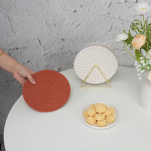 - 4. قواعد أواني ساخنة متعددة الاستخدامات: قواعد قطنية متعددة الاستخدامات ومناسبة للطهي والتقديم ومثالية أيضًا كوسائد واقية لمنع الخدوش أسفل أوعية الزهور أو الفازات الخزفية أو الزجاجية أو الزجاجات. يمكن استخدامها أيضًا كمفارش أطباق ومفارش أوعية ساخنة للطاولة ومفارش للأطباق الساخنة ومفارش لأباريق الشاي والقهوة والمزيد.