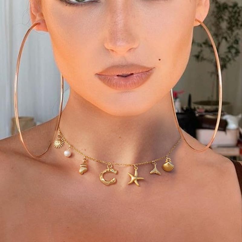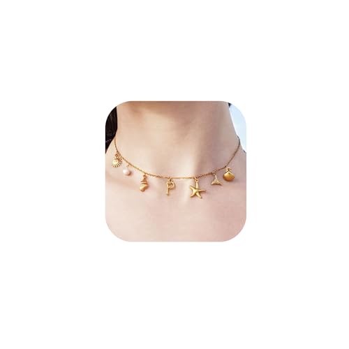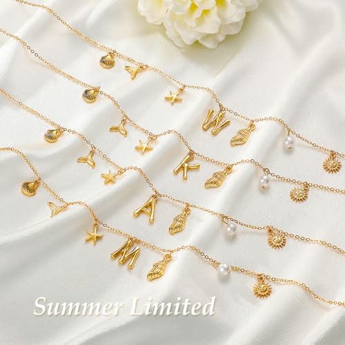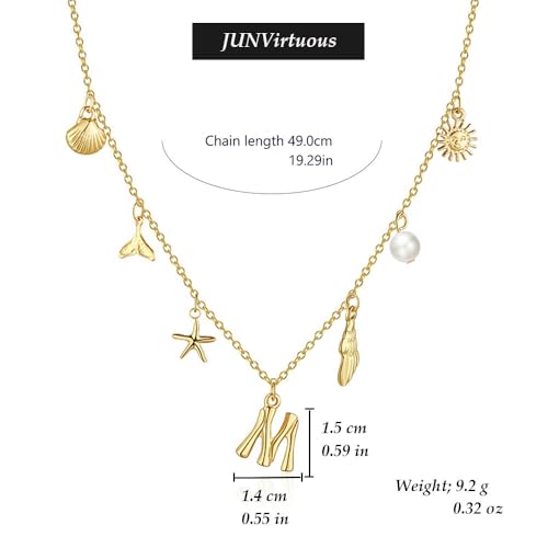 JUNVirtuous - JUNVirtuous Gold Initial Charm Necklaces for Women,Shell Letter Necklaces Charms Pendant Boho Summer Seashell Beach 14k Starfish Surfer Jewelry Gifts