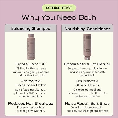 - Balancing Shampoo: Target the Root Cause of Dandruff and Scalp Irritation with this salon-quality formulation, safe for color-treated and chemically-treated hair. Our Zinc Pyrithione shampoo provides a clean, gentle and soothing cleanse while simultaneously addressing the source of scalp flaking and irritation without damaging your hair. Reclaim balance and harmony for your scalp with our specialized, luxe smelling and high performance formula.