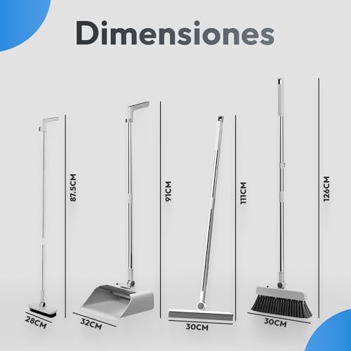 - Broom with Folding Dustpan and Adjustable Telescopic Handle 🌟 The JUPPLIES folding broom and dustpan features a telescopic handle adjustable up to 126 cm, which adapts to different heights, preventing back pain. Its foldable design saves space and makes it easy to store in any corner of the home.