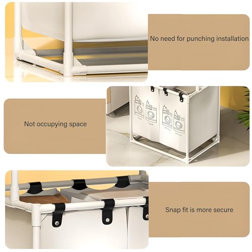 - 【4 Removable Laundry Bags】: A total of 4 removable laundry bags are included, each of which can be removed or installed separately. When a stain is found, it can usually be wiped with a damp cloth, or the laundry baskets can be removed and washed in the washing machine.
