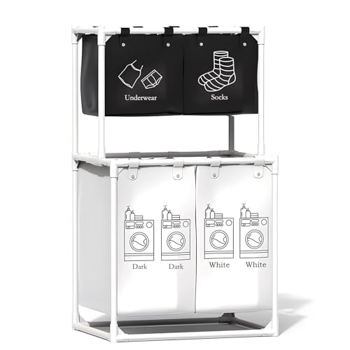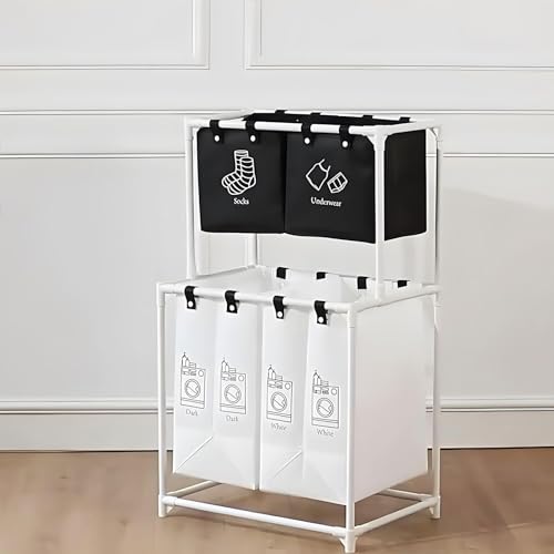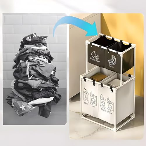 - 【Efficient Sorting Helper】: This laundry sorter is divided into four sections so you can easily sort clothes by color and type efficiently. In addition to holding your everyday clothes, pants, and socks, it can also hold pillows etc.