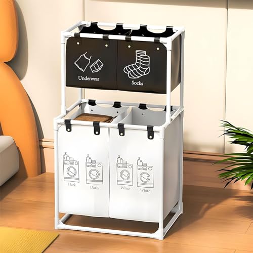 JUSCHIPEXL - Laundry Sorter 4 Sections with 2-Tier Design,Rolling Laundry Hamper for Efficient Dirty Clothes Organization,Laundry Basket with Large Capacity and 4 Removable Bags