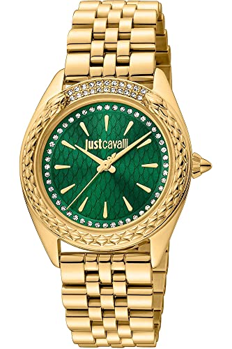 Just Cavalli - جست كافالي ساعة يد كوارتز انالوج بسوار من الستانلس ستيل للنساء JC1L195M0365، لون اخضر بوتل، عصرية