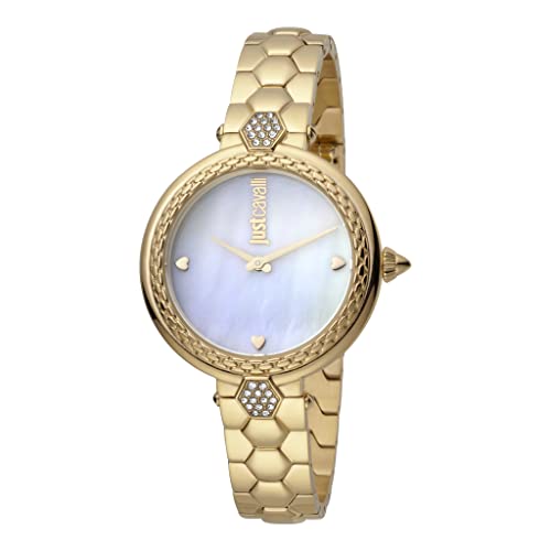 Just Cavalli - Just Cavalli Pearl Dial Stainless Steel Analog Watch Bracelet Set For Women, JC1L128M0565, White Mother of Pearls, casual