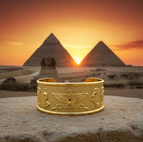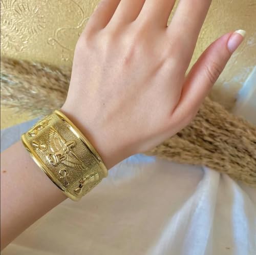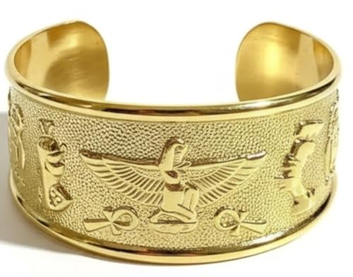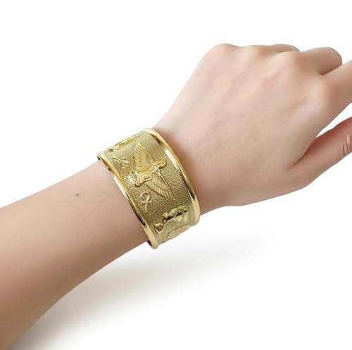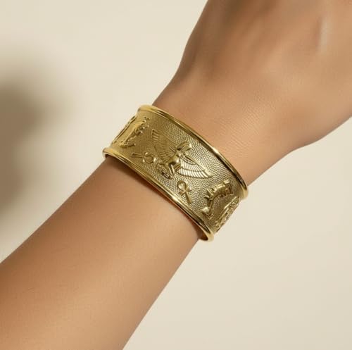 Generic - سوار نحاسي فرعوني مصري قابل للتعديل بنمط هيروغليفي عريض من جاست سالم، مجوهرات مصر القديمة للنساء والرجال
