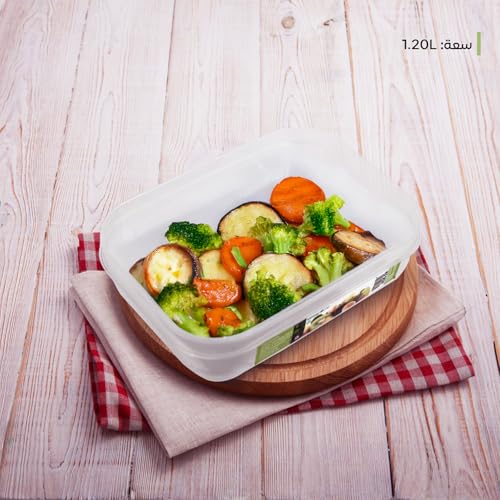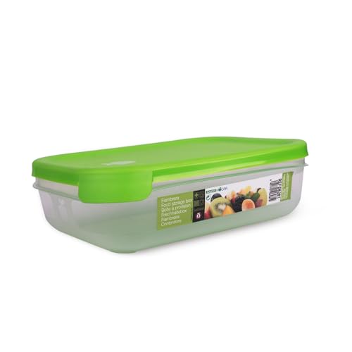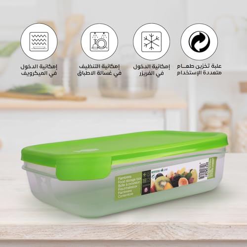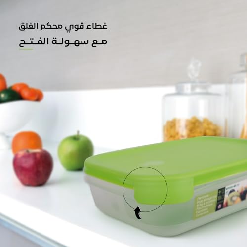 Juypal Hogar - 1.2L Rectangular Food Storage Container – Green Snap Lock Lid – BPA Free Plastic – Microwave, Freezer & Dishwasher Safe – Multi-Purpose – Made in Spain