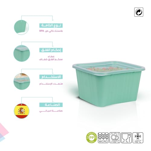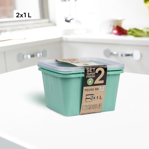 Juypal Hogar - 1L Food Storage Container – Soft Green Airtight Lid – BPA-Free Plastic – Microwave, Freezer & Dishwasher Safe – Reusable Meal Prep Box – Made in Spain