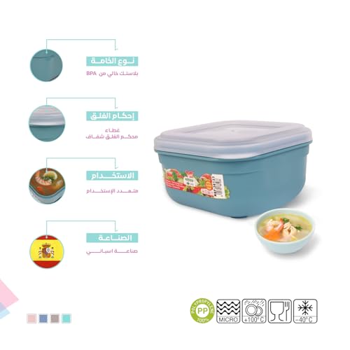 Juypal Hogar - 1L Square Food Container – Soft Blue with Transparent Airtight Lid – BPA Free Plastic – Microwave, Freezer & Dishwasher Safe – Multi Purpose – Made in Spain