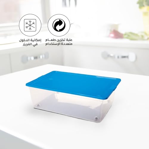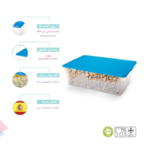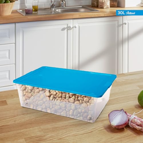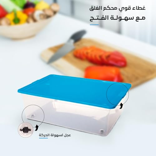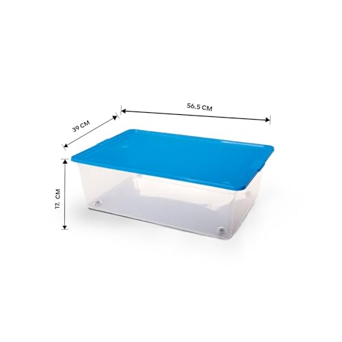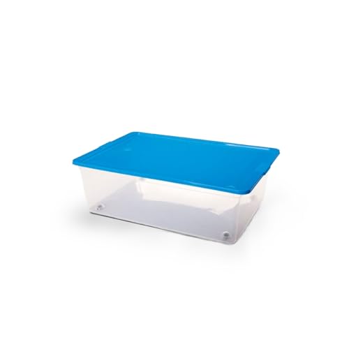 JUYPAL HOGAR - 30L Multi Use Storage Container with 4 Wheels, BPA Free Transparent Plastic, Airtight Blue Lid, Reusable – Made in Spain – 40 x 30 x 18 cm