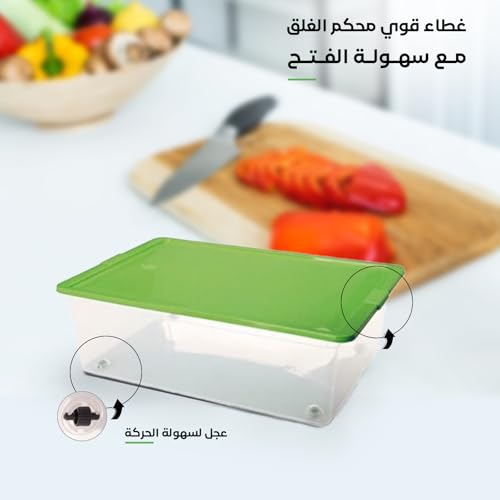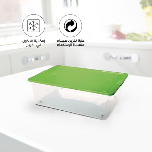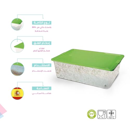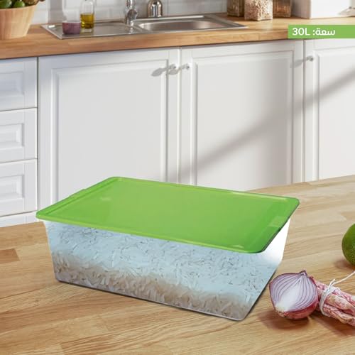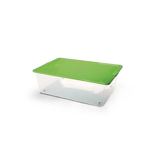 Juypal Hogar - 30L Multi Use Storage Container with 4 Wheels, BPA Free Transparent Plastic, Airtight Green Lid, Reusable – Made in Spain – 40 x 30 x 18 cm