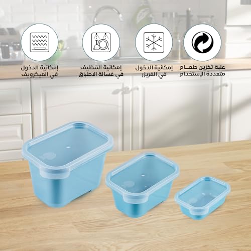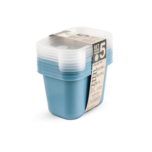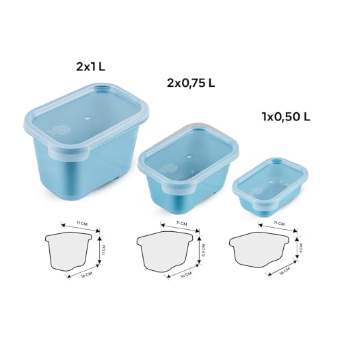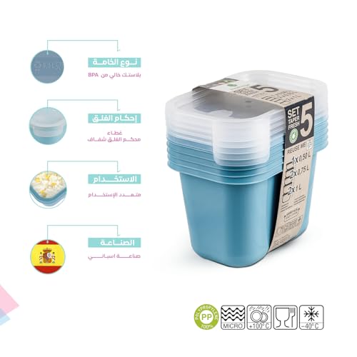 Juypal Hogar - 5-Piece Food Storage Set – Soft Blue with Clear Lids – (1×0.5L + 2×0.75L + 2×1L) – BPA Free Plastic – Microwave & Freezer Safe – Made in Spain