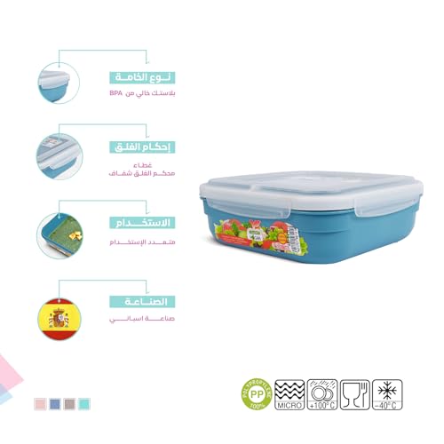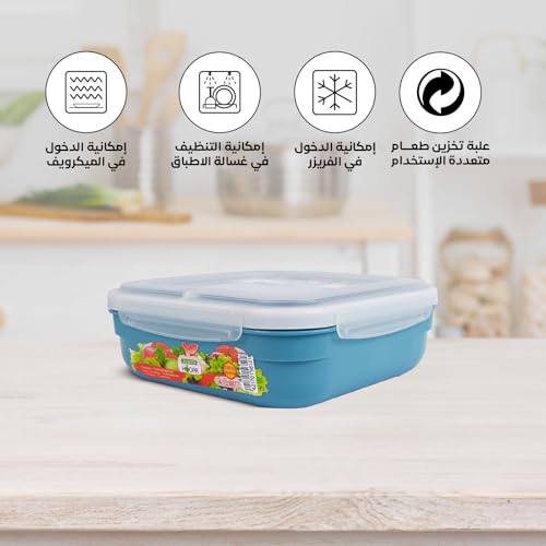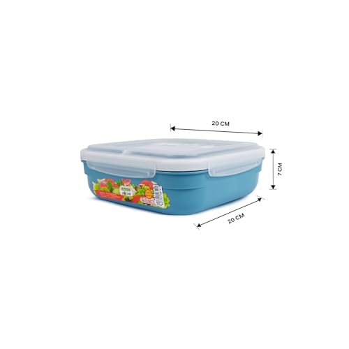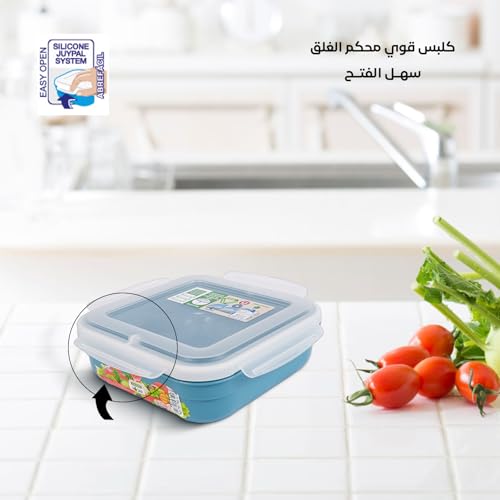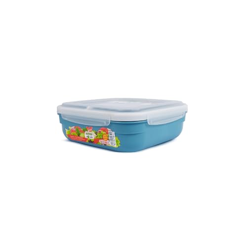 Juypal Hogar - Food Container 1.6L – Square BPA Free Plastic Lunch Box, Leak Proof with Silicone Seal – Freezer, Microwave and Dishwasher Safe, Made in Spain – 20×20×7 cm (Blue)