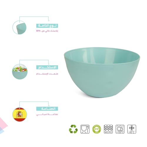Juypal Hogar - بولة سلطة بلاستيك دائرية شفافة خالية من مادة بيسفينول أ وآمنة للاستخدام في الميكروويف والفريزر وغسالة الأطباق صنعت في إسبانيا سعة 5 لتر من جويبال هوجار، أخضر