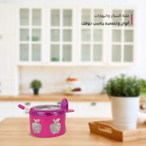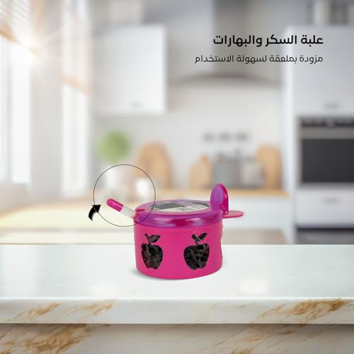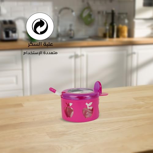 Juypal Hogar - Sugar & Spice Container – Pink – BPA-Free Plastic with Lid & Spoon – Ideal for Kitchen Organization – Made in Spain